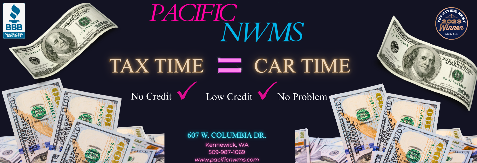 Pacific Northwest Motorsports is a used car dealer in Kennewick WA serving the Tri-Cities WA area. We carry a great selection of Kennewick used cars for sale, as well as trucks, vans, SUVs and crossover vehicles. Need auto financing? Let our friendly staff help you find the Kennewick used car that fits your style and fits your budget. Call today or apply online now for quick and easy Kennewick auto financing. Pacific Northwest Motorsports is located at 607 W Columbia Dr, Kennewick, WA 99336.